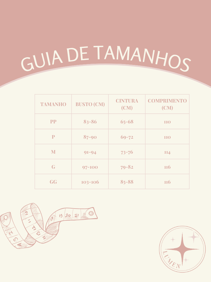 🌿 Nossos tecidos naturais são delicados e podem ter um leve encolhimento após a primeira lavagem — um toque natural que não altera o caimento nem o conforto da peça.